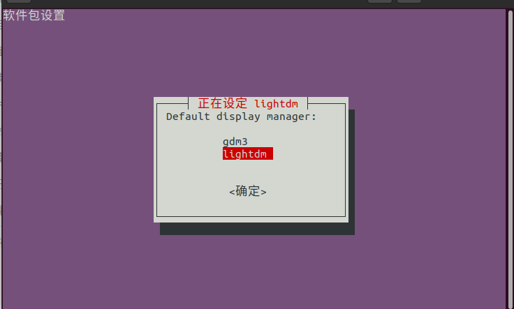 • 如果已经选择了gdm3,可以使用命令sudo dpkg-reconfigure lightdm,在出现的对话框中选择lightdm,之后重启服务器。